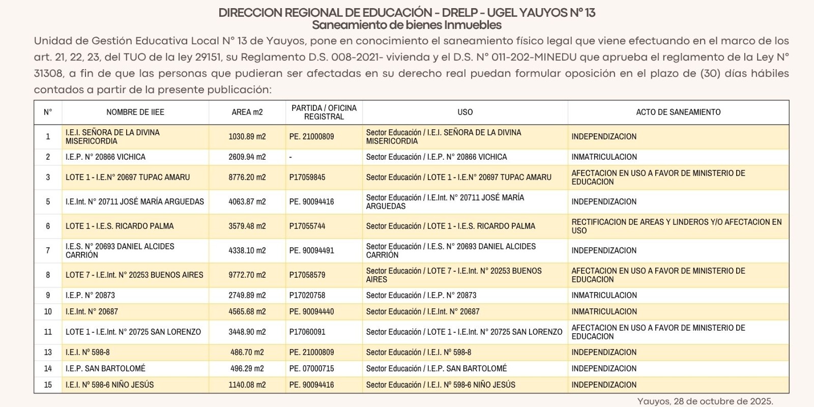 De conformidad a la Directiva 081-2025-MINEDU se procede la publicación de los resultadospreliminares de la SEGUNDA CONVOCATORIA - SEGUNDA ETAPA de la selección de PROMOTORASEDUCATIVAS COMUNITARIAS (PRONOEI) de la jurisdicción de la UGEL N° 13 – Yauyos COMUNICADO...